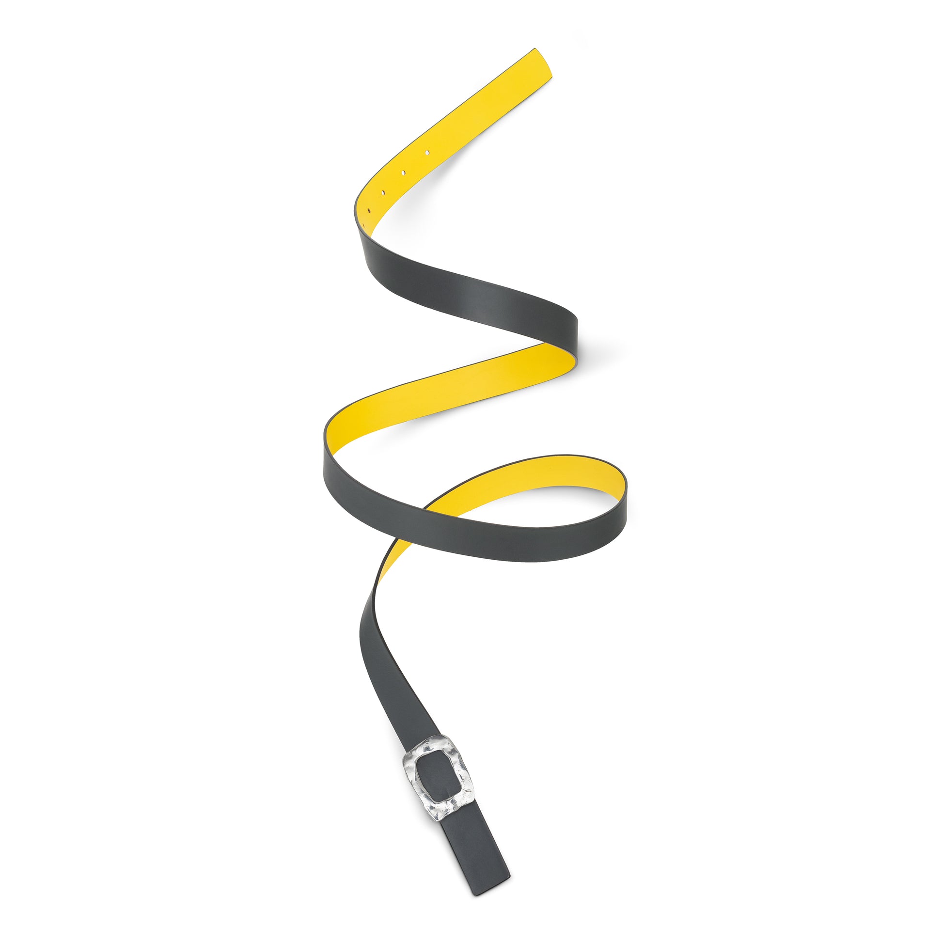 CINTURÓN AMARILLO y GRIS- CUERO REVERSIBLE 25 mm / HEBILLA PEQUEÑA LATON BAÑADO EN PLATA