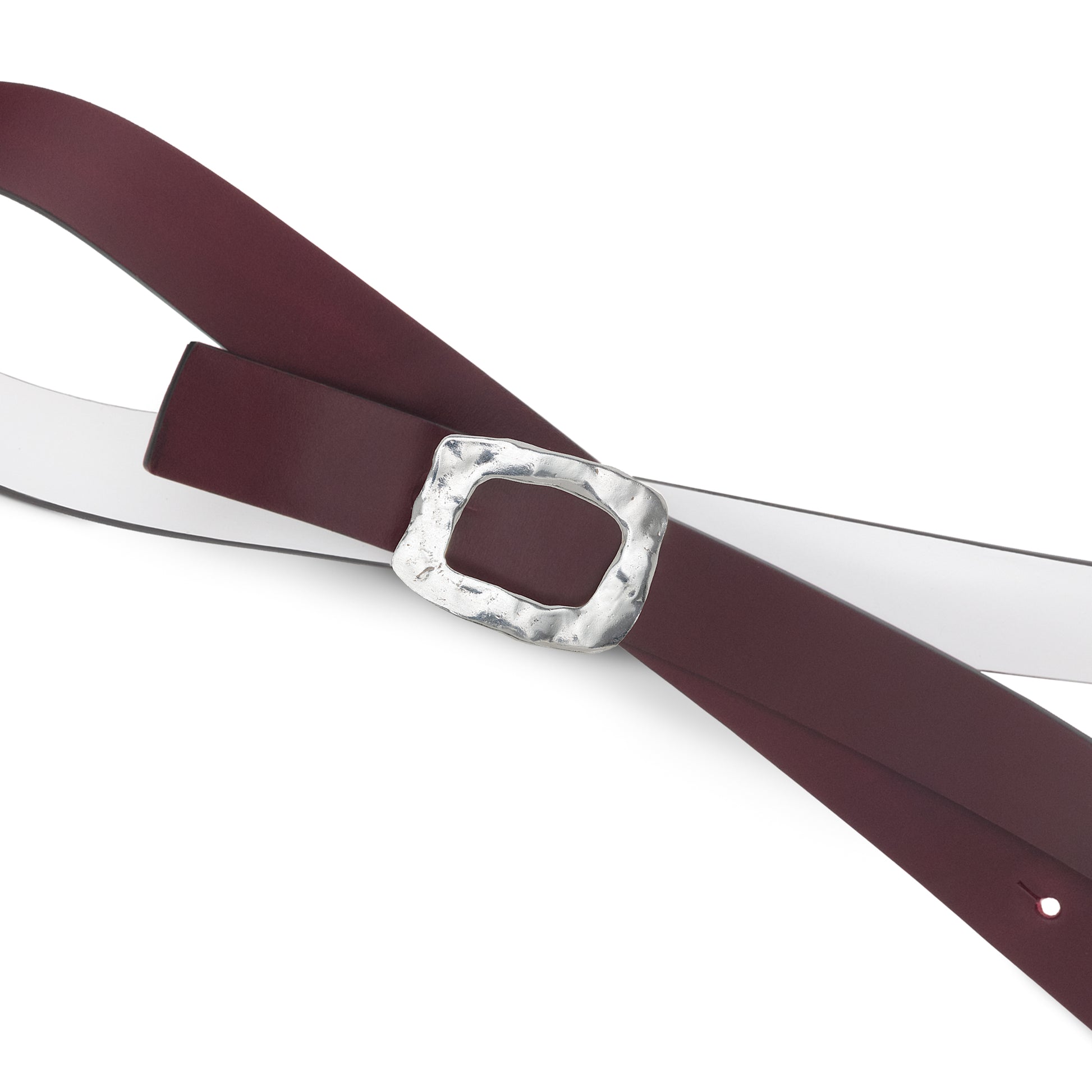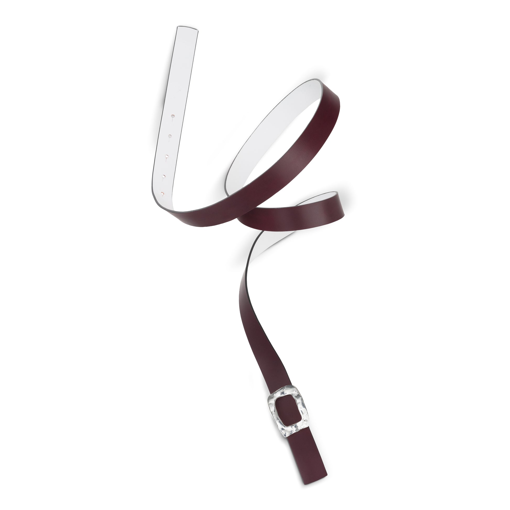 CINTURÓN BLANCO y BURDEOS - CUERO REVERSIBLE 25 mm / HEBILLA PEQUEÑA LATON BAÑADO EN PLATA