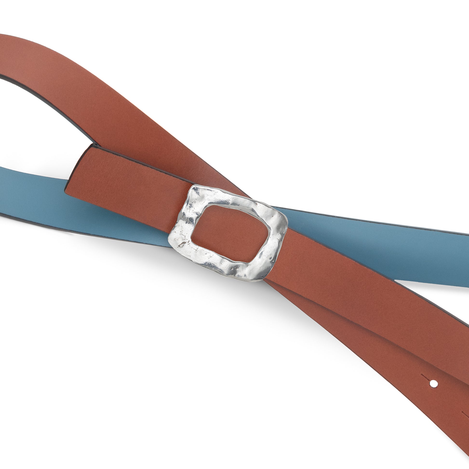 CINTURÓN CELESTE - CUERO REVERSIBLE 25 mm / HEBILLA PEQUEÑA LATON BAÑADO EN PLATA
