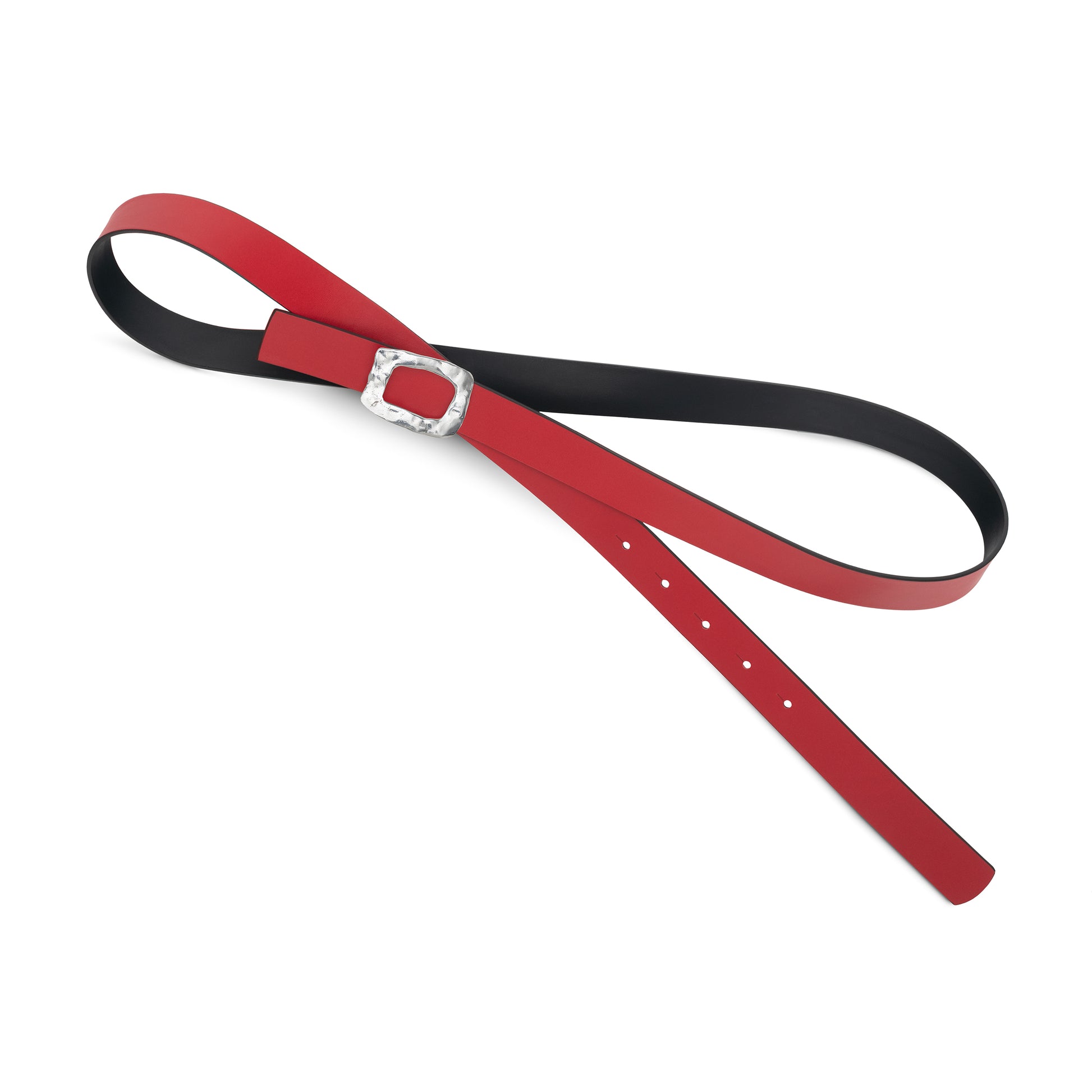 CINTURÓN ROJO y NEGRO- CUERO REVERSIBLE 25 mm / HEBILLA PEQUEÑA LATON BAÑADO EN PLATA